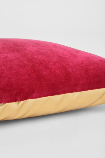 This pillow is red velvet on one side and gold metallic on the other. Pretty hot.